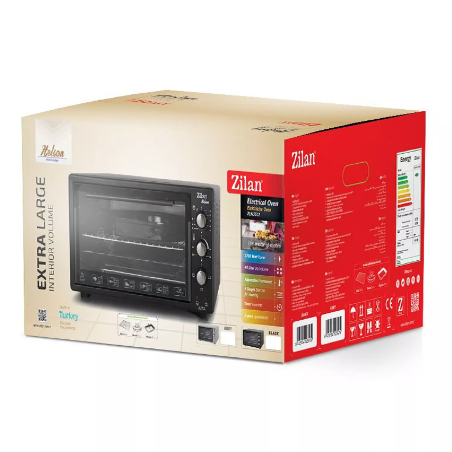 Caracteristici pentru Cuptor electric Zilan ZLN3130 Helson Black, 45 l, 1700 W, Timer, Negru