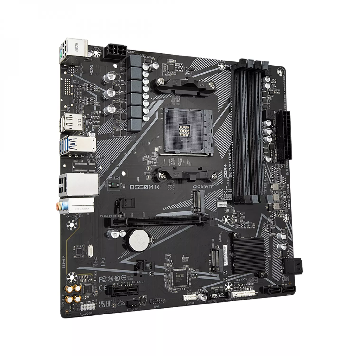 # 332691 Placa de baza GIGABYTE B550M K, Socket AM4, AMD B550, Dual 4xDDR4-5100, APU AMD graphics, HDMI, DP, 1xPCIe4.0 X16, 4xSATA3, RAID, 1xM.2PCIe 4.0, 1xPCIeX1, Realtek HDA 7.1, GbE LAN, 6xUSB3.2, mATX
