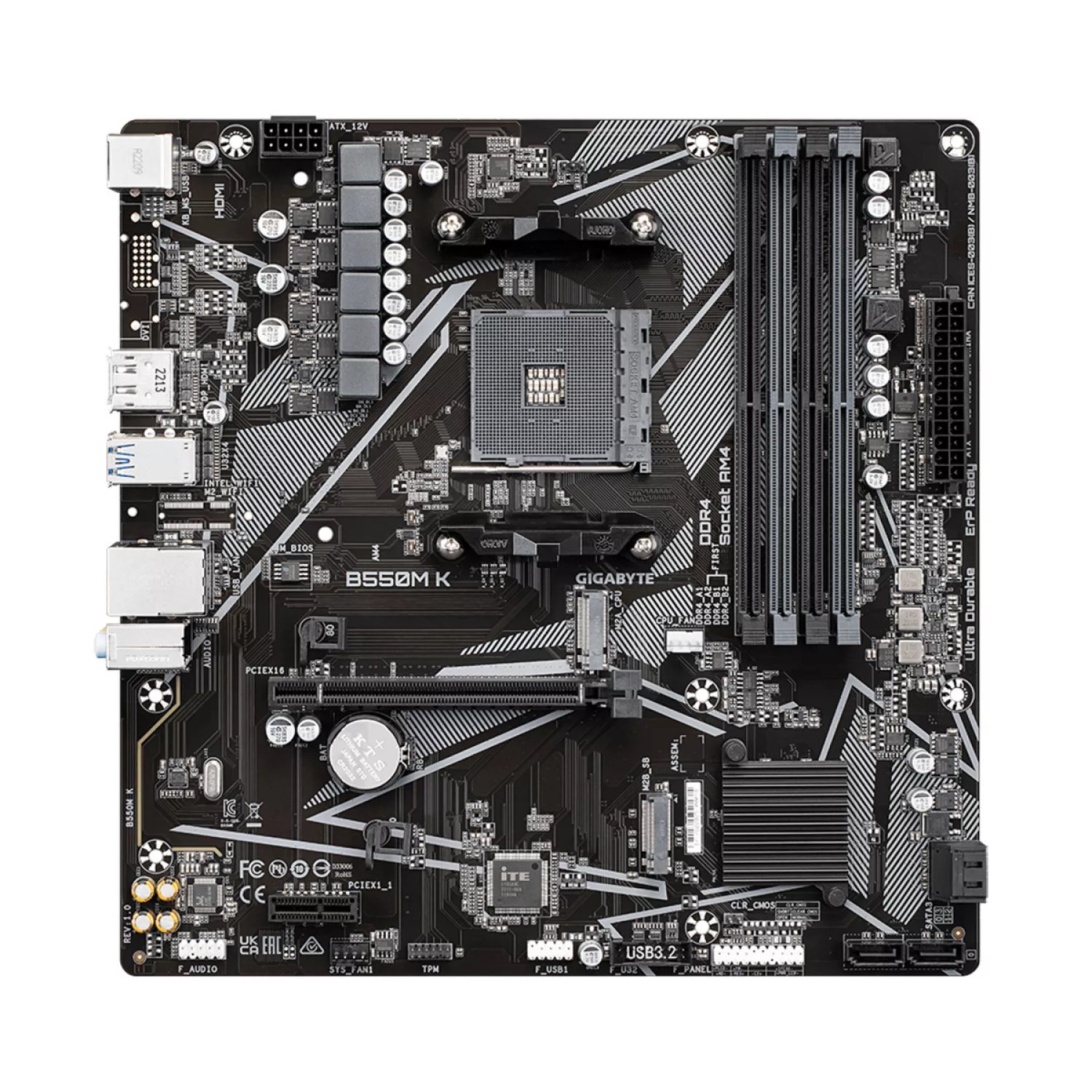 Caracteristici pentru Placa de baza GIGABYTE B550M K, Socket AM4, AMD B550, Dual 4xDDR4-5100, APU AMD graphics, HDMI, DP, 1xPCIe4.0 X16, 4xSATA3, RAID, 1xM.2PCIe 4.0, 1xPCIeX1, Realtek HDA 7.1, GbE LAN, 6xUSB3.2, mATX