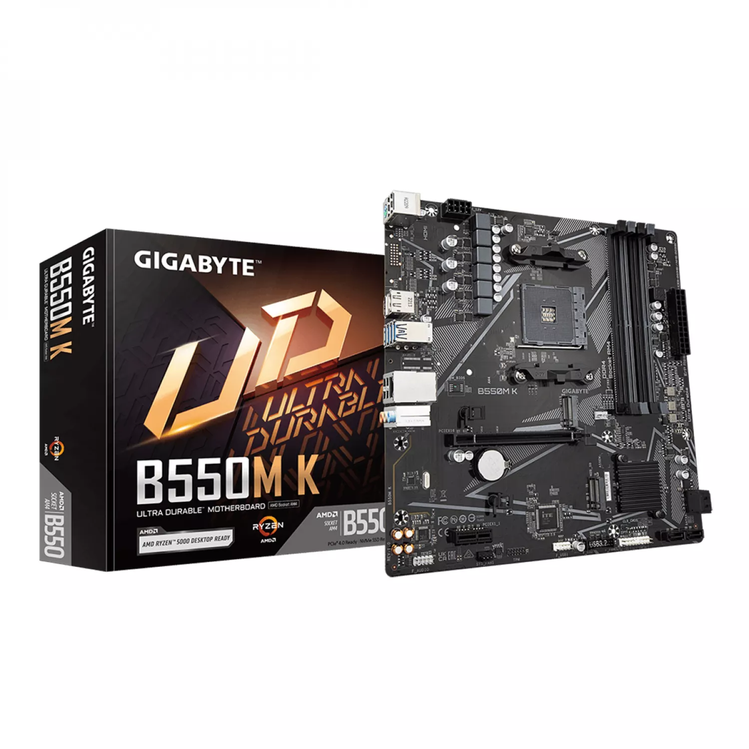 B550M K, Socket AM4, AMD B550, Dual 4xDDR4-5100, APU AMD graphics, HDMI, DP, 1xPCIe4.0 X16, 4xSATA3, RAID, 1xM.2PCIe 4.0, 1xPCIeX1, Realtek HDA 7.1, GbE LAN, 6xUSB3.2, mATX
