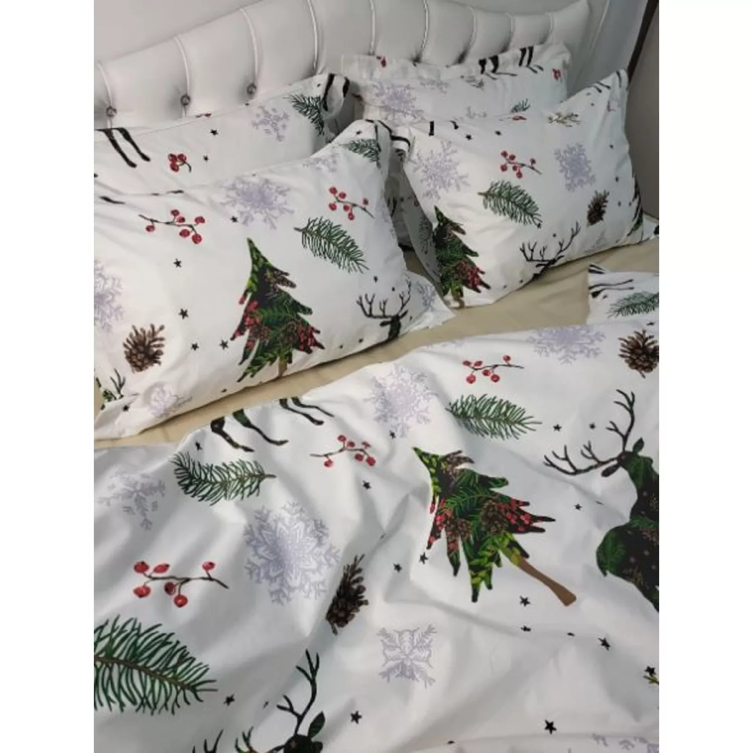 Lenjerie de pat lilimax new years олени 160/200/30, 2 persoane euro, ranforce, alb