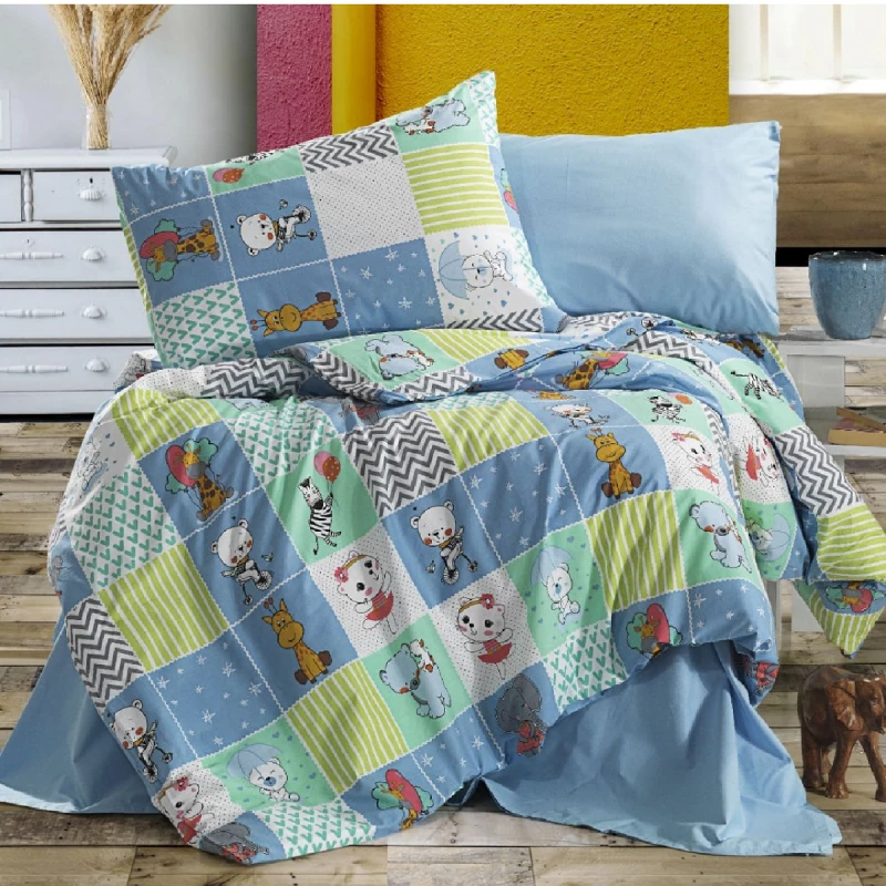 # 338917 Lenjerie de pat Cottony SLPR TEDY, 2 persoane Euro, Poplin, Albastru, Albastru deschis