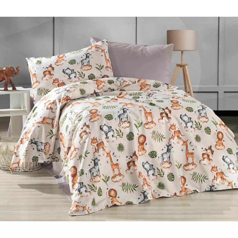 Caracteristici pentru Lenjerie de pat Cottony SLPP ANIMALUTE, DAMIAN, 2 persoane Euro, Poplin, Alb, Bej