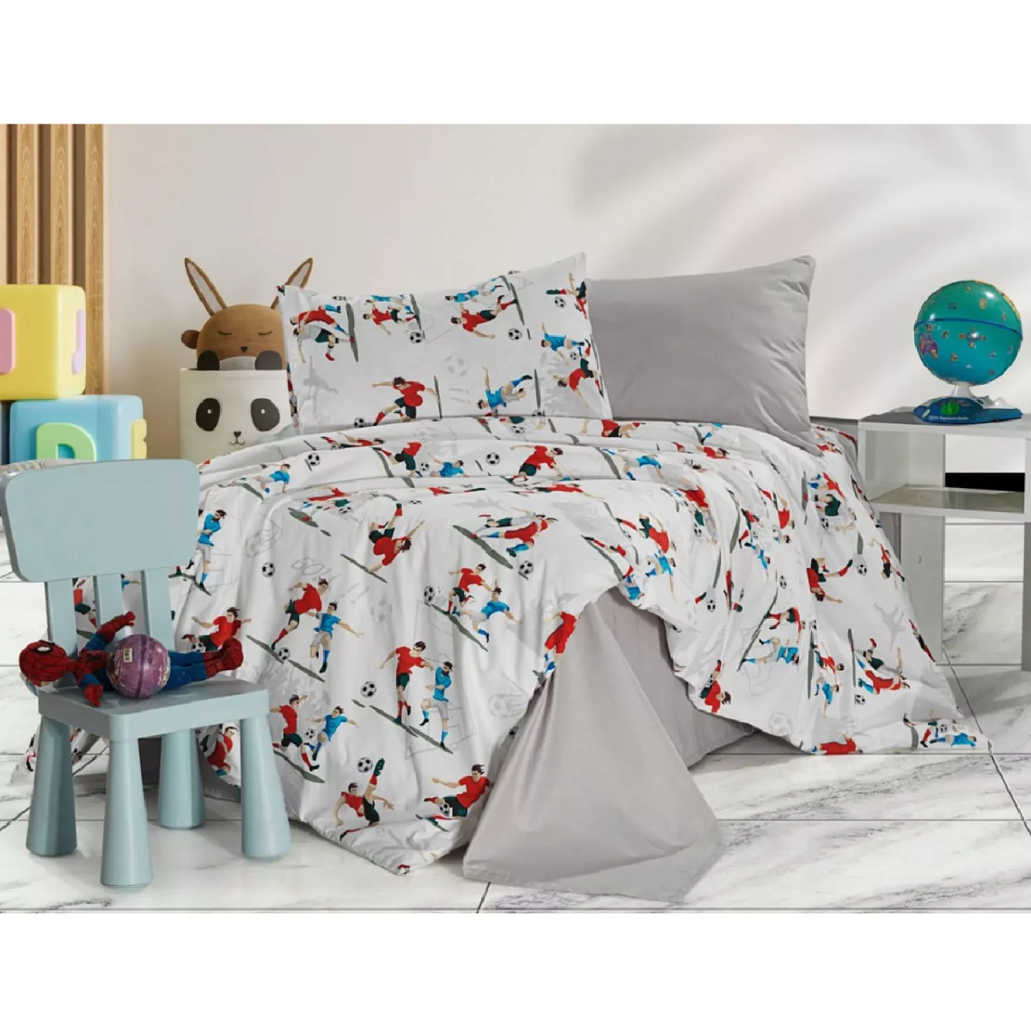 Lenjerie de pat cottony slpr fotbalistii (240), 2 persoane, ranforce, albastru