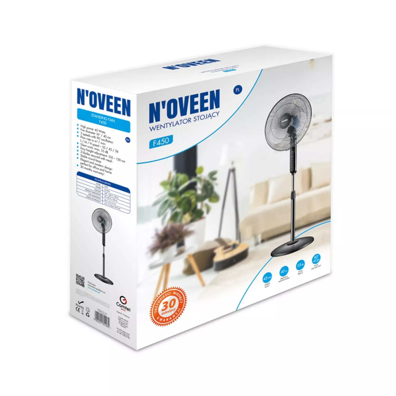 Ventilator noveen standing fan f450 16"/40cm/45w, black