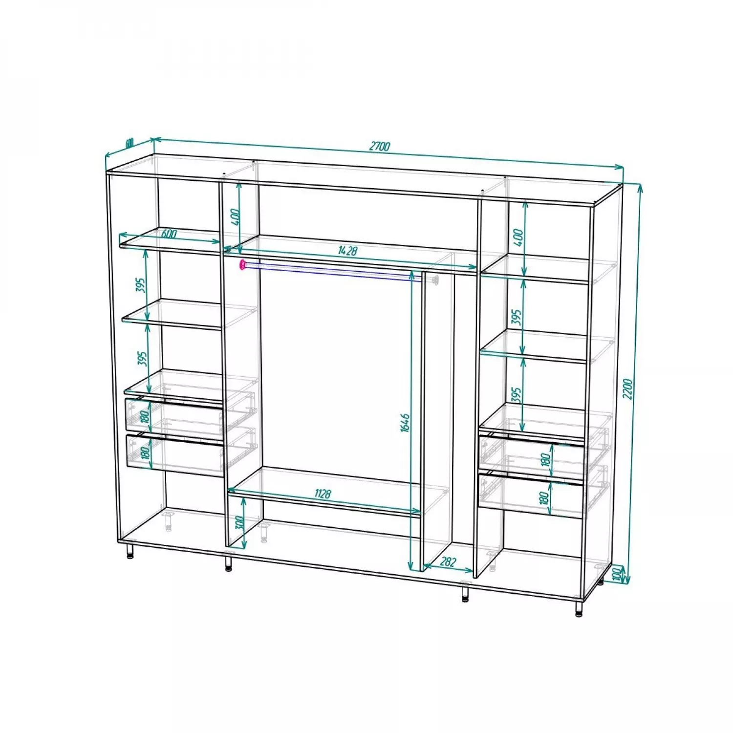 Dulap cu usi glisante mobildor aron - uși k 270x60x220, wenge