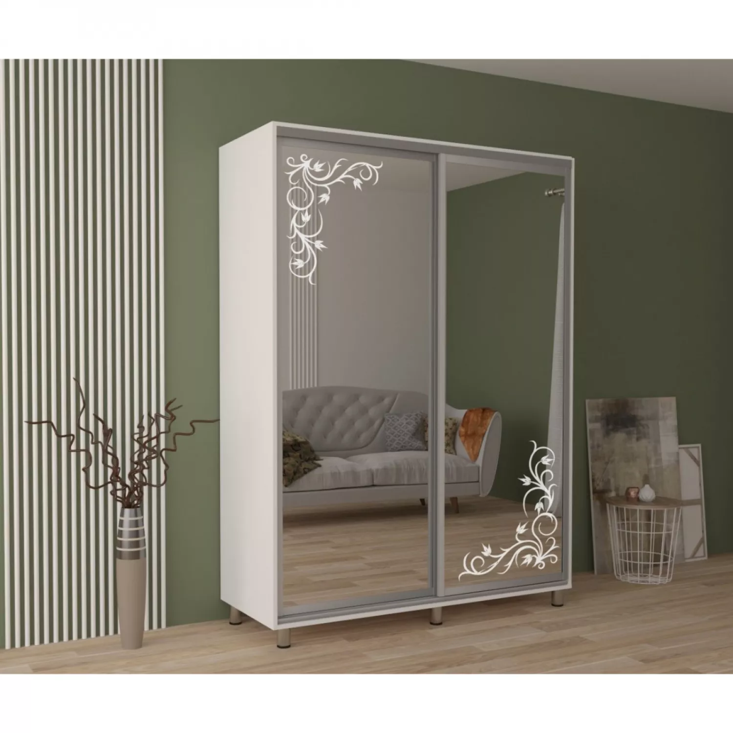 Caracteristici pentru Dulap cu usi glisante MOBILDOR ARON OGLINDA/DESEN 1200X600X2200, Alb Briliant