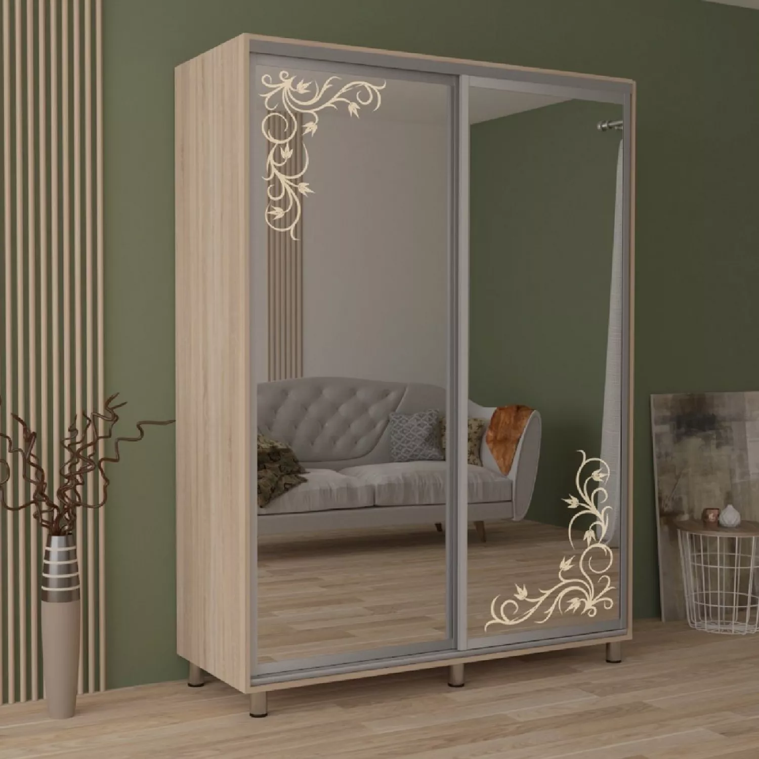 Dulap cu usi glisante mobildor aron s - uși oglinda/desen 170x60x220, sonoma