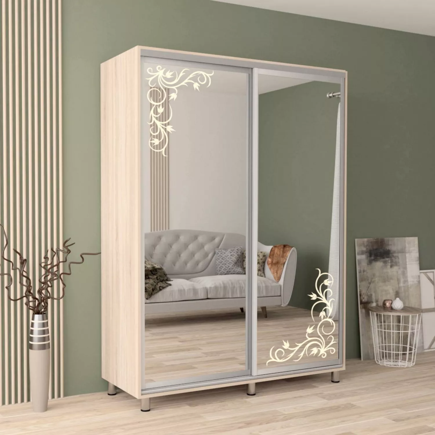 Caracteristici pentru Dulap cu usi glisante MOBILDOR ARON P - UȘI OGLINDA/DESEN 190/60/220, Sonoma