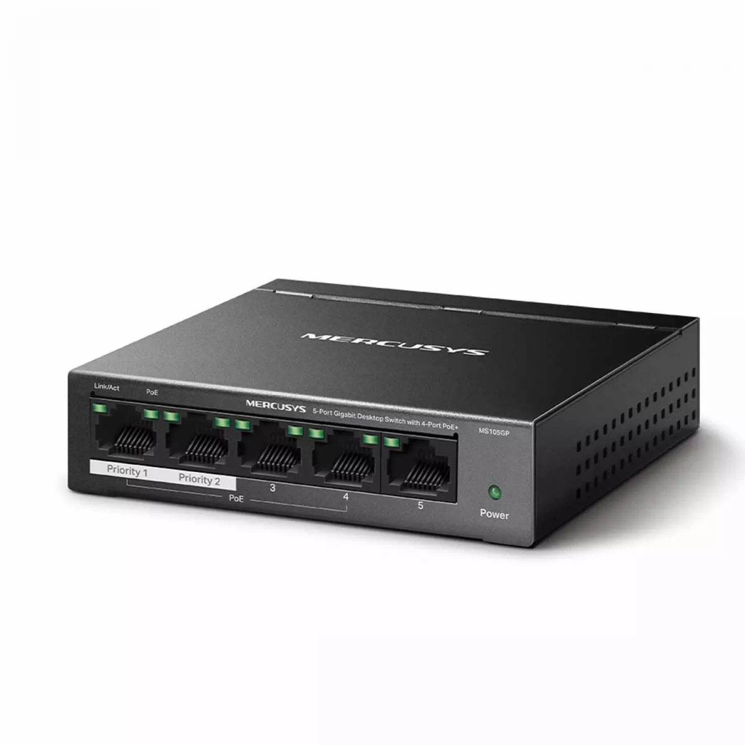Comutator de retea mercusys .5-port gigabit switch "ms105gp", with 4-port poe, steel case, 65w budget