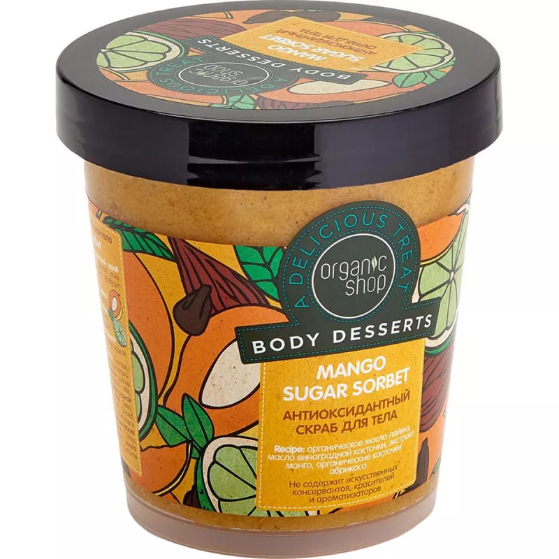 Caracteristici pentru Scrub Organic Sh. de corp Mango antioxidant 450 ml К6 Mango Sugar Sorbet instant Renewal
