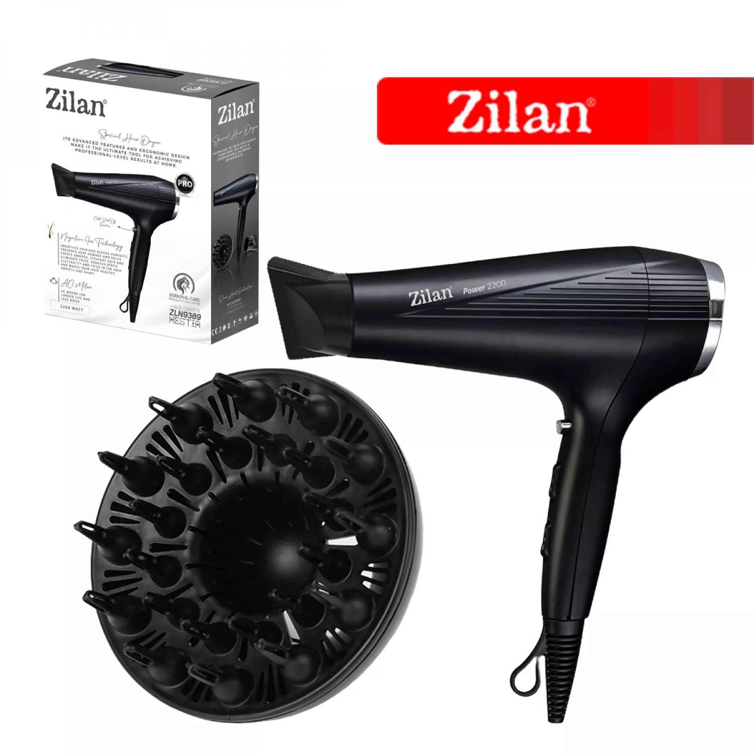 Caracteristici pentru Uscator de par Zilan ZLN9389, 2200 W, Negru