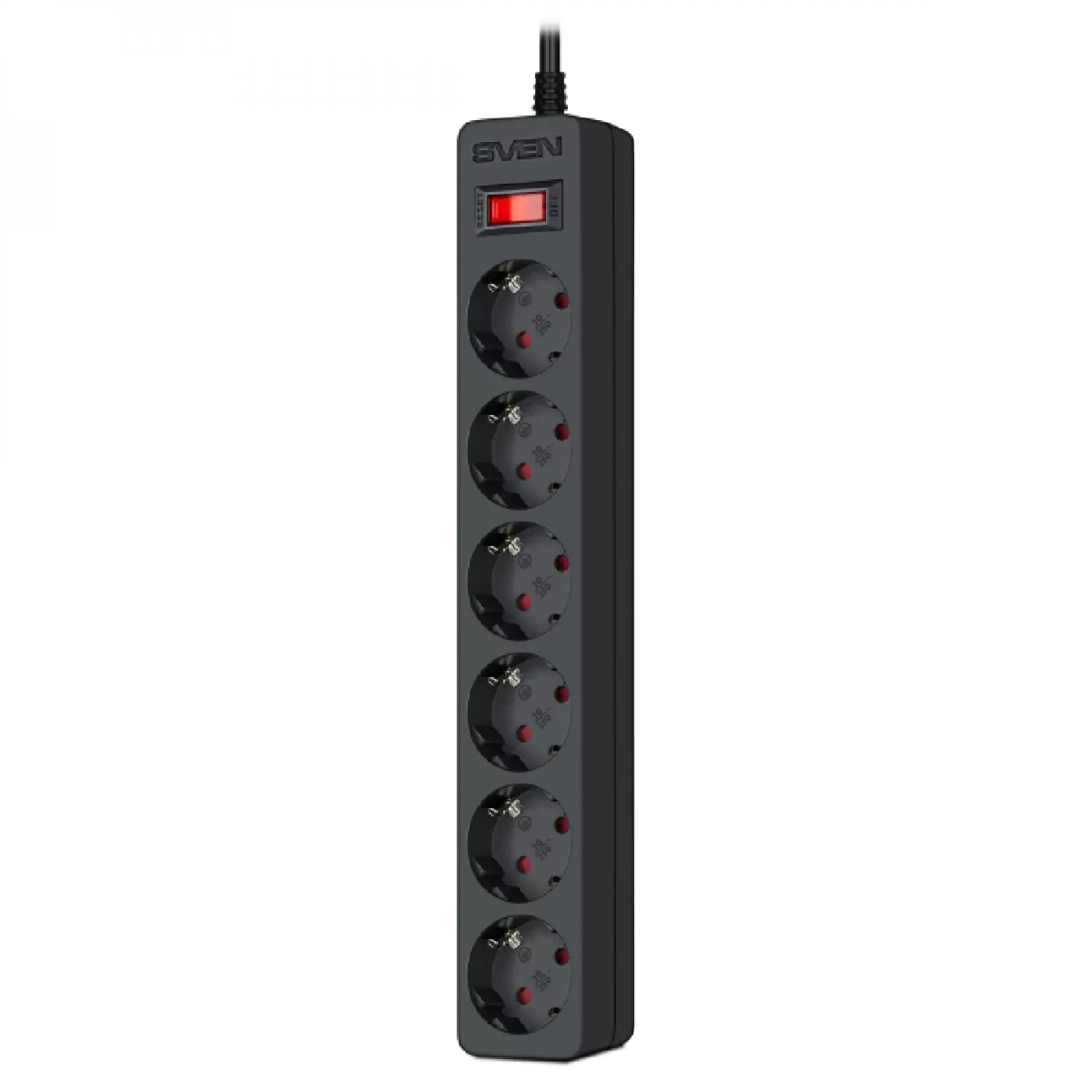 Prelungitor cu protectie sven sf-06e, black, 6 sockets, 5.0m, flame-retardant material