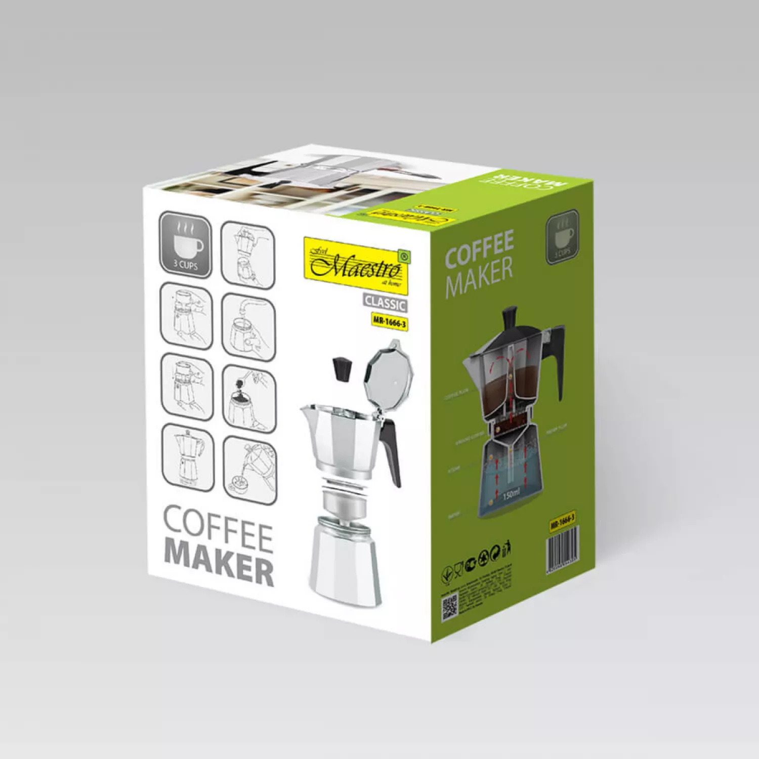 Caracteristici pentru Cafetiera Maestro MR-1666-3, 0.15 l, Inox