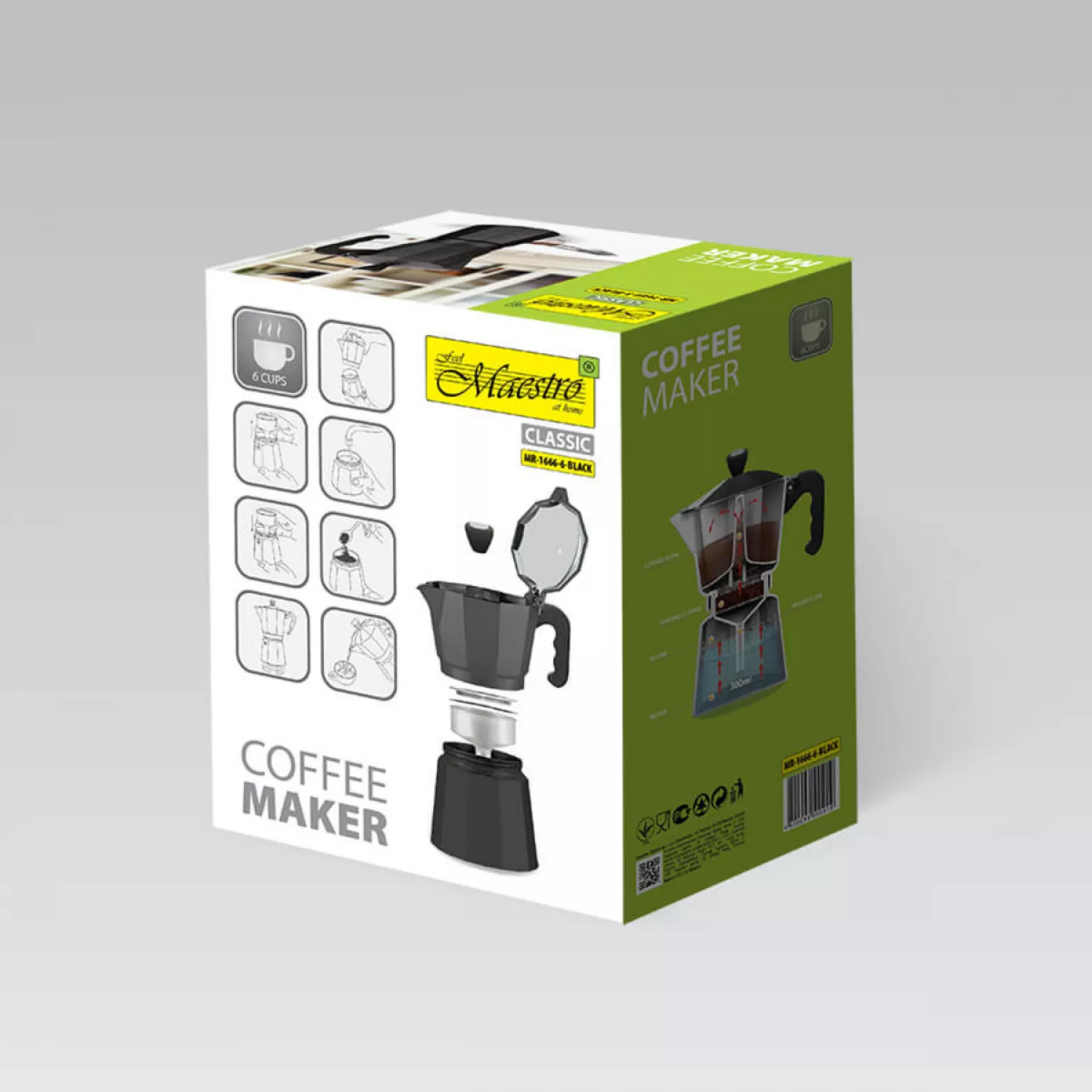 Caracteristici pentru Cafetiera Maestro MR-1666-6, 0.3 l, Negru