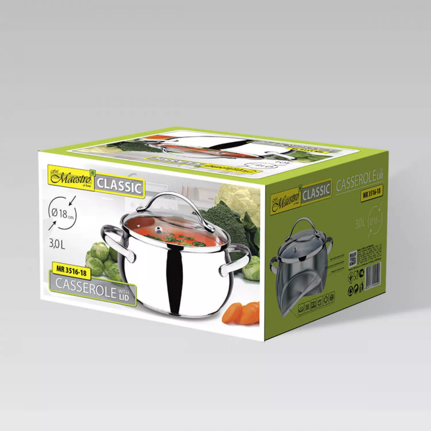 Caracteristici pentru Cratita cu capac Maestro MR-3516-18, 3 l, 18 cm, Inox