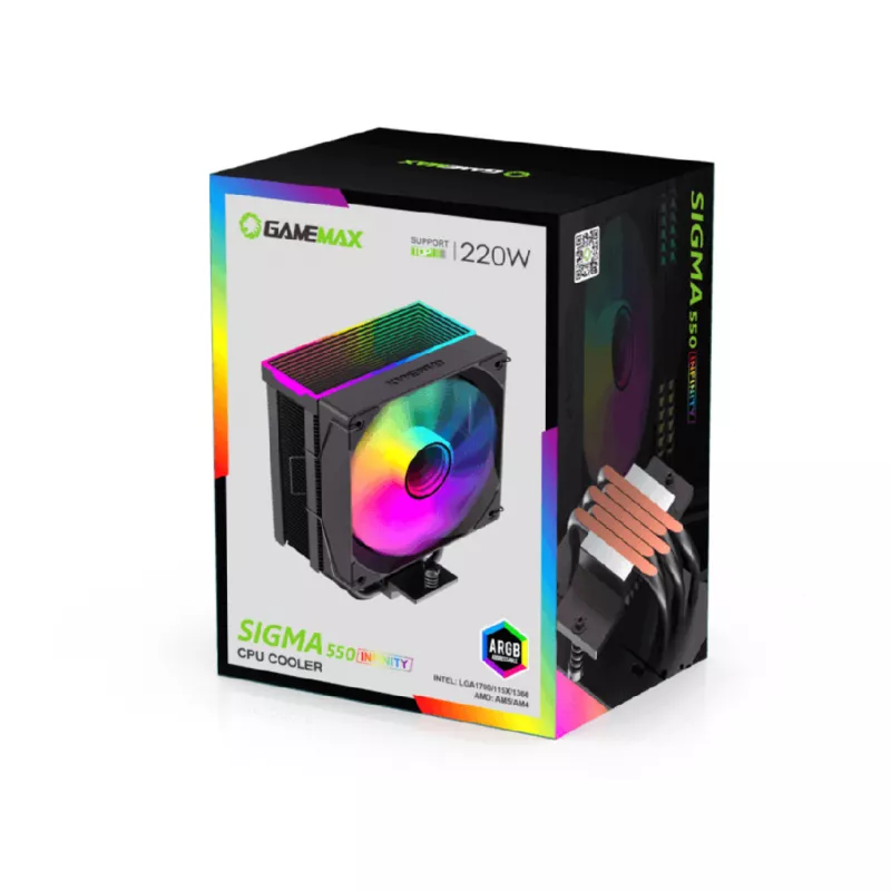 Cooler universal gamemax sigma 550 infinity bk, pwm, argb, 5x6mm, 44 fins