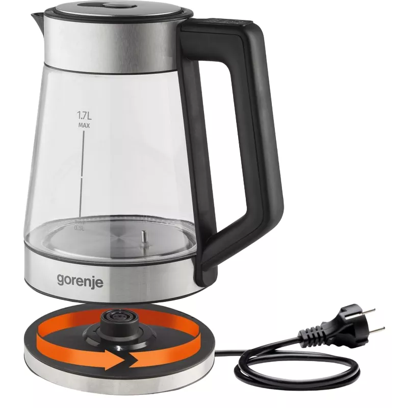 Ceainic electric gorenje k17trg, 1,7 l, 2200 w, metal, sticlă