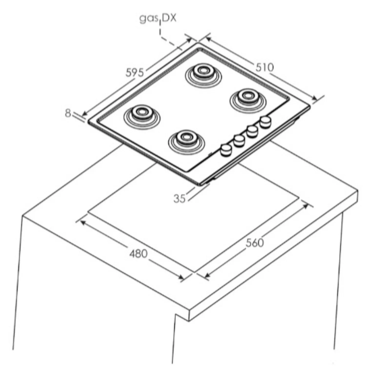 Plita incorporabila cu gaz candy chg6brx, 4 arzatoare, inox