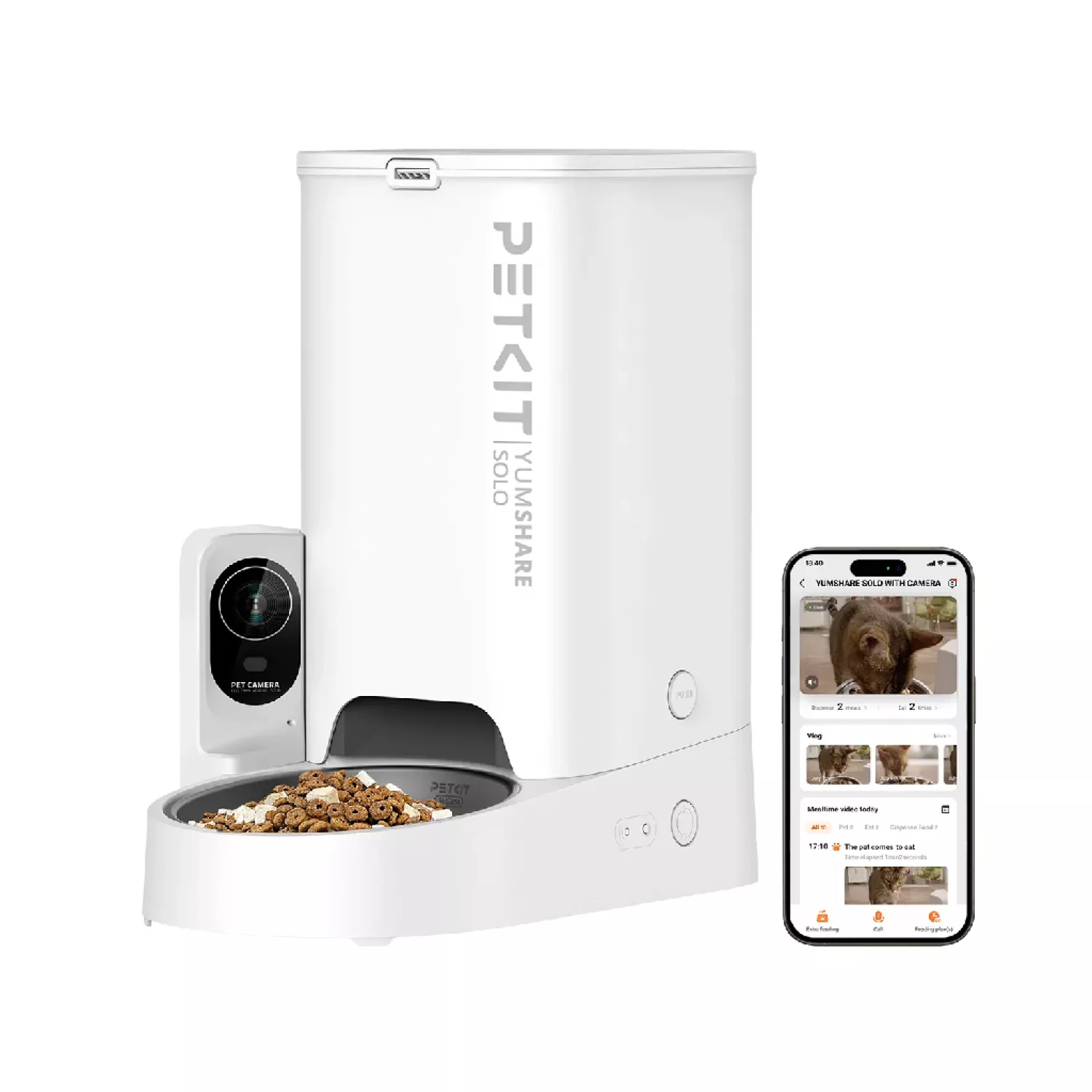 YUMSHARE SOLO SMART PET FEEDER WITH CAMERA, WI-FI AND BLUETOOTH CONNECTION, 304 STAINLESS STEEL, CAPACITY: 3L(1.33KG), PERSONLIZED MEAL CALL/VOICE CALL, NORMAL DRY FOOD, FREEZE DRIED FOOD, APP CONTROL, EMERGENCY POWER SUPPLY 14 DAYS, SIZE 316* |