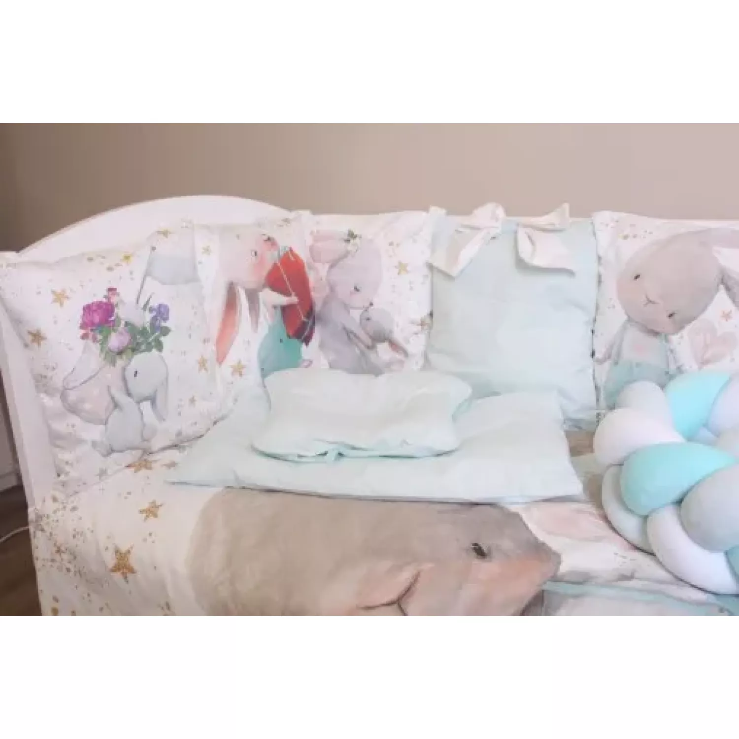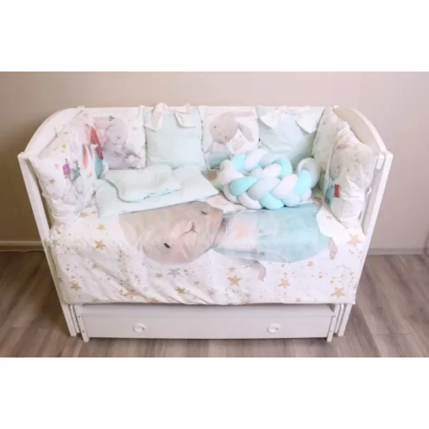 Lenjerie de pat pm set lenjerie 8 piese cosita iepuras turcoaz