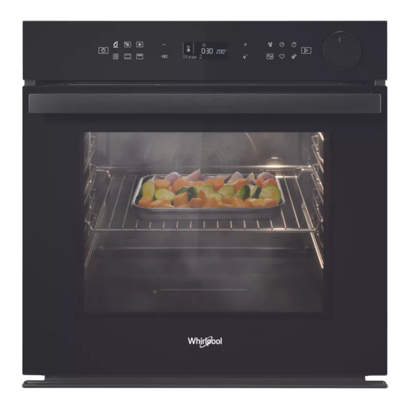 Tehnologie care vă va transforma preparatele în capodopere. Senzorii inteligenți ai celui de-al șaselea simț detectează automat parametrii cheie, cum ar fi timpul și temperatura, și controlează întregul ciclu de gătire. Puteți monitoriza informațiile cheie folosind afișajul simplu și funcțional. Această funcție este utilă în special dacă trebuie să preparați mai multe preparate cât mai repede posibil. Distribuția specială a fluxului de aer vă permite să gătiți până la trei preparate simultan, fără a perturba aromele. Cuptorul multifuncțional WHIRLPOOL cu aer cald oferă diverse metode de gătire pentru rezultate perfecte de fiecare dată, indiferent de rețeta pe care o gătiți. Preparați cartofi prăjiți congelați, nuggets de pui și alte preparate cu 50% mai puțină grăsime! Un ventilator puternic pentru convecție asigură circulația uniformă a aerului cald în întreaga cavitate a cuptorului, iar o tavă specială Air Fry asigură că alimentele sunt încălzite din toate părțile și crocante fără a fi nevoie să amestecați. Funcția Ready2Cook activează programul selectat fără preîncălzire. În acest fel, puteți reduce timpul de gătire, economisi energie la încălzire și vă puteți bucura de rezultate excelente. Descoperiți o modalitate incredibil de simplă și eficientă de a îndepărta petele de alimente grase. Tehnologia inovatoare SmartClean curăță temeinic și eficient cuptorul în doar 35 de minute. Pur și simplu turnați 200 ml de apă în partea de jos a cuptorului și selectați programul SmarClean. După 35 de minute, cuptorul va fi curat și tot ce trebuie să faceți este să îl ștergeți cu o lavetă.