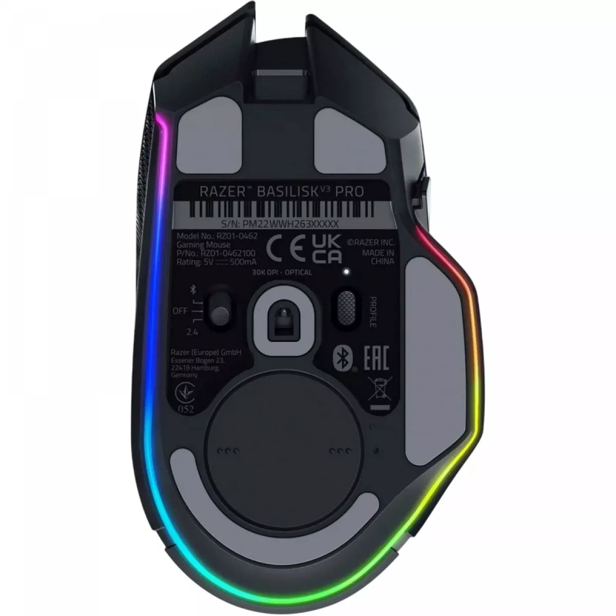 GAMING WIRELESS MOUSE BASILISK V3 PRO, 30К DPI,11 BUTTONS, 70G, 750IPS , OPT.SW, 112G, ON-BOARD MEMORY, HYPERSCROLL, RGB, 2.4GHZ+BT, BLACK |