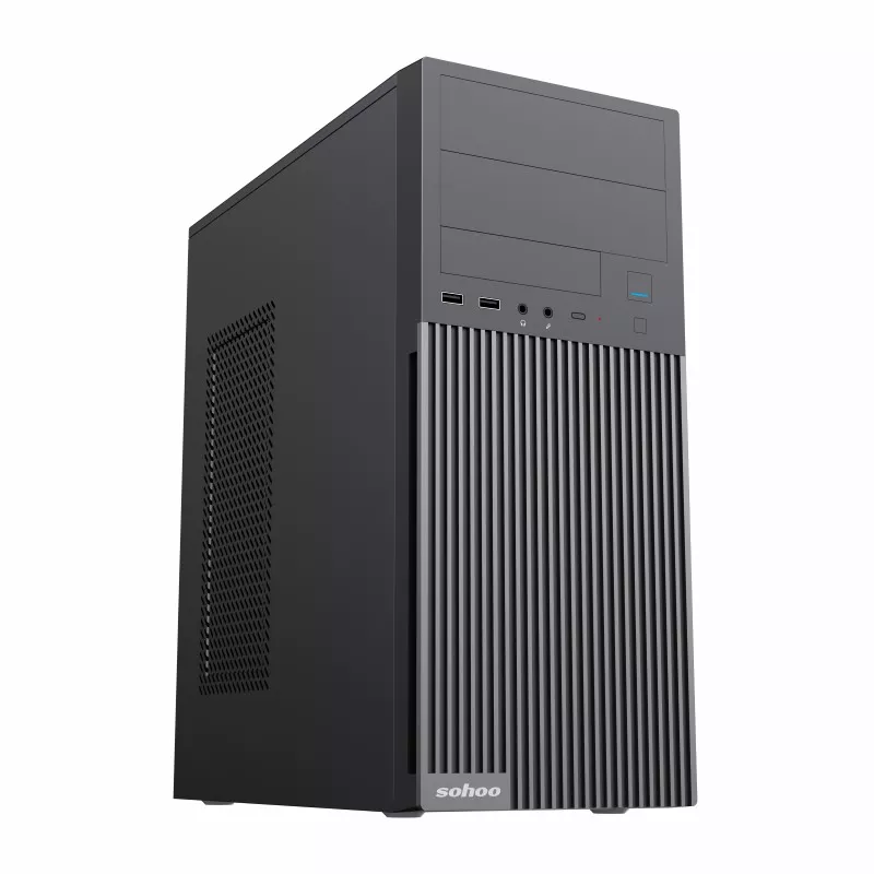 Carcasa sohoo case atx 550w 2815bk, 1xusb-c, 1xusb3.0, 1xusb2.0, 2x5.25", 1x3.5", 3x2.5", psu: atx-550w-12cm, black