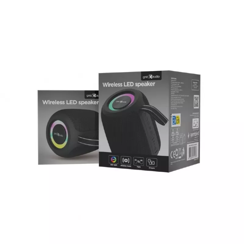 Boxa gembird spk-bt-led-05-bk, bluetooth led portable speaker, 8w rms, bluetooth v.5.3, rgb, built-in microphone, tws, microsd, built-in lithium battery - 1200 mah, fm-radio: power and audio cables are anntena, 0.45g, black