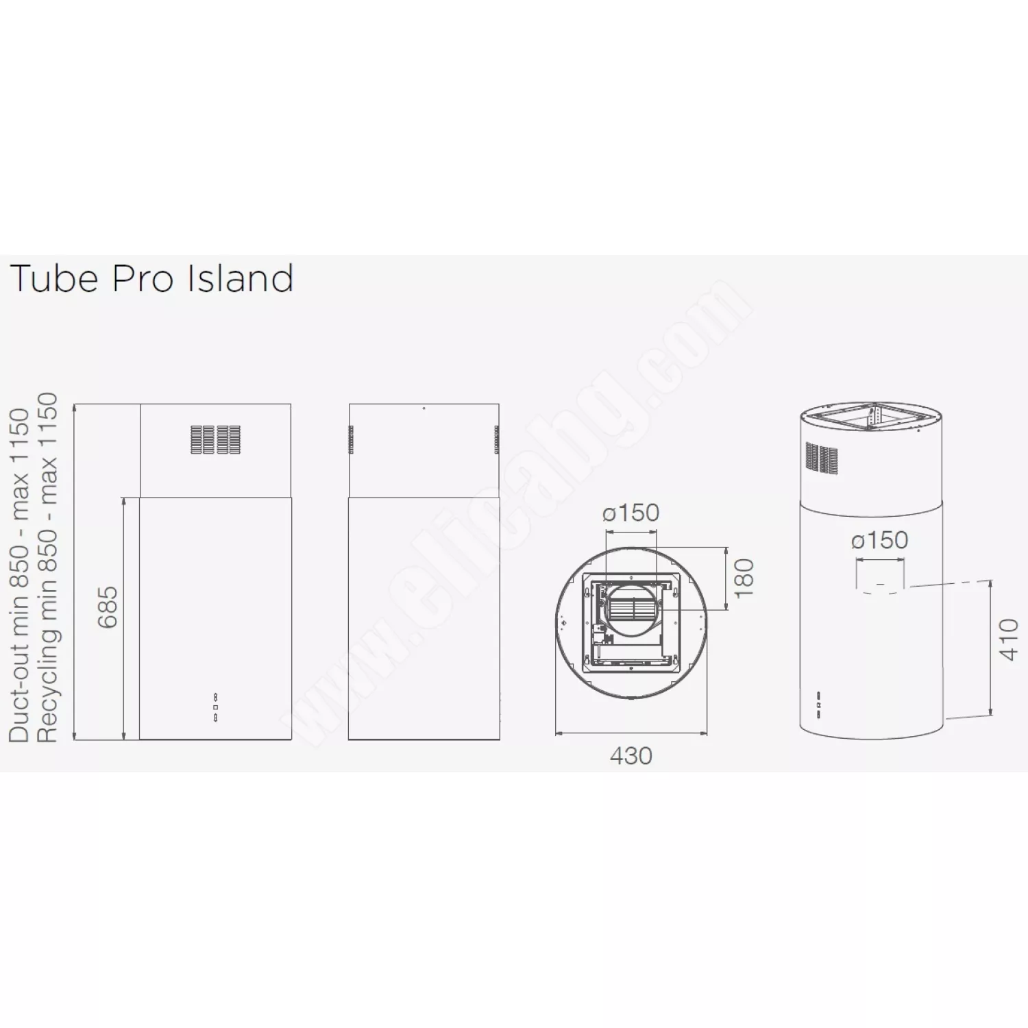 Caracteristici pentru Hota Elica TUBE PRO ISLAND BL /A/43
