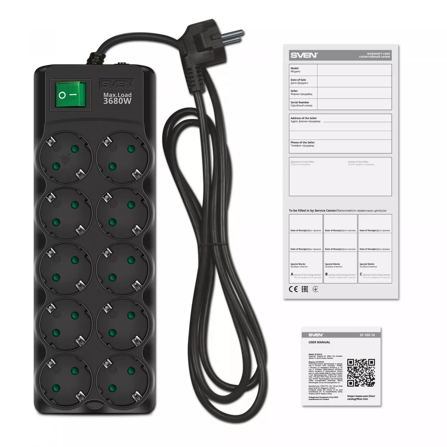 Caracteristici pentru Prelungitor cu protectie SVEN SURGE PROTECTOR SF-10E-16, 10 SOCKETS, CHILDREN PROTECTION, VARISTOR PROTECTION, NON-FLAMMABLE, 3680W, 5.0M, BLACK