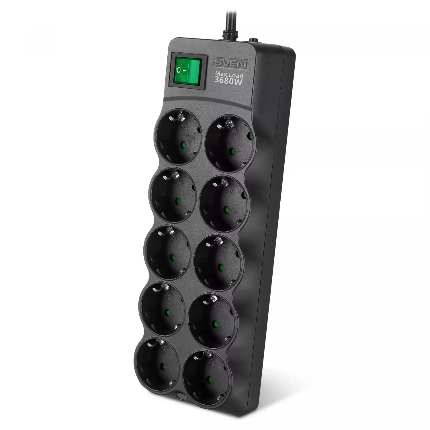 Prelungitor cu protectie sven surge protector sf-10e-16, 10 sockets, children protection, varistor protection, non-flammable, 3680w, 5.0m, black