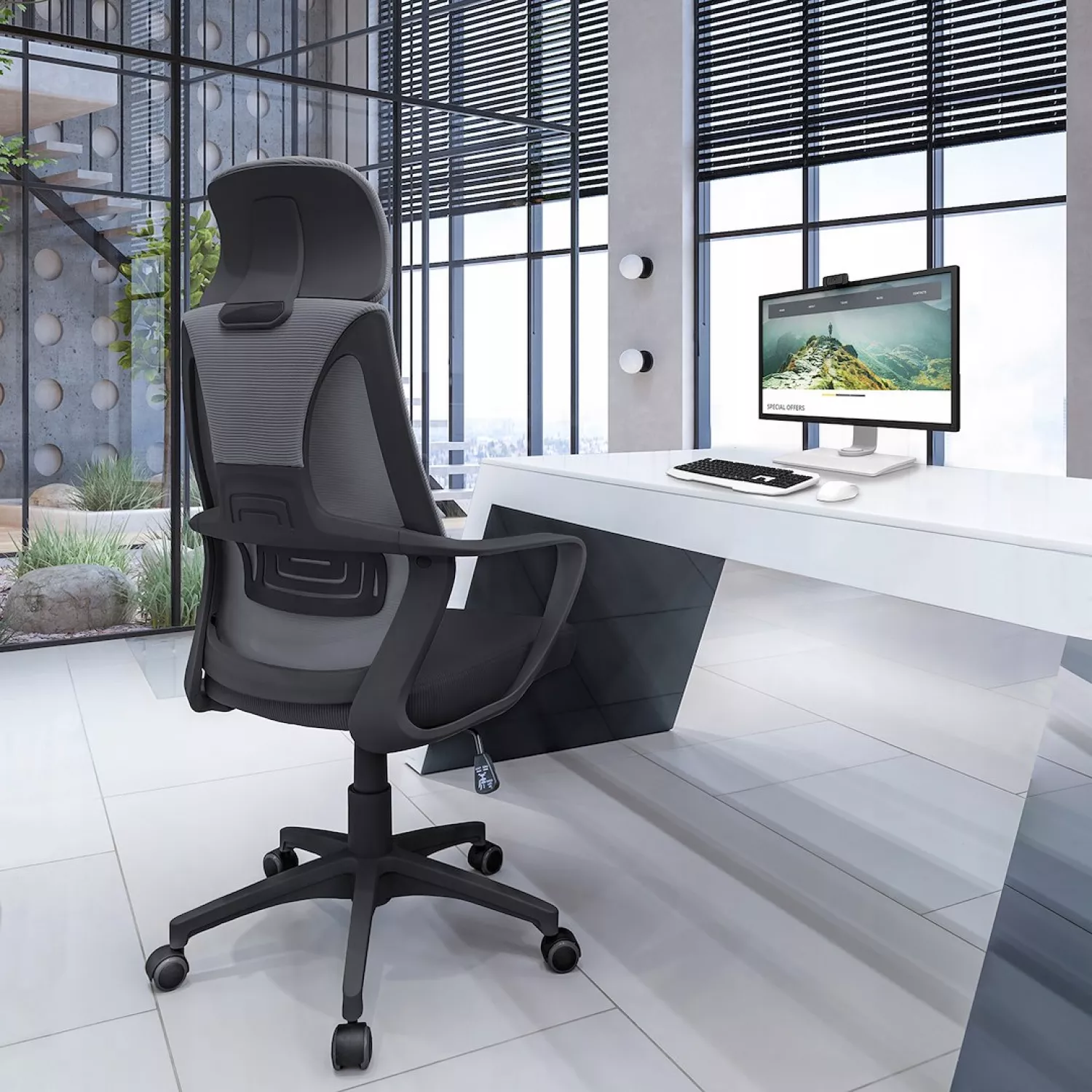 Fotoliu de birou jumi scaun de birou cu roti , futura, 125x61x49cm, inaltime reglabila, negru/gri cm-270695