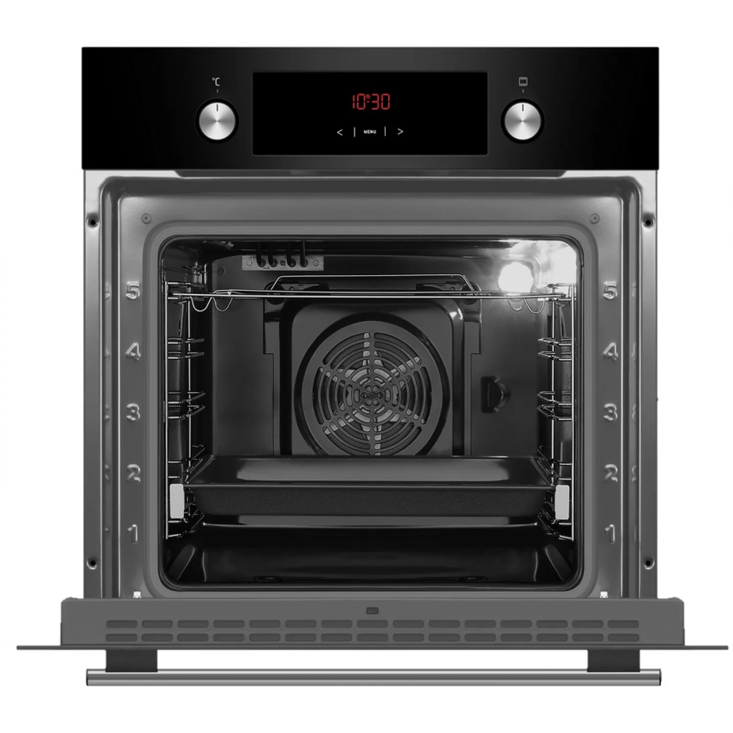 Funcția de convecție asigură o circulație constantă a aerului în interiorul cuptorului, datorită căreia căldura din interior este distribuită uniform și rapid. Acest lucru reduce timpul de gătire și vă permite, de asemenea, să obțineți o coacere uniformă și o crustă aurie. Folosind convecția, puteți găti pe mai multe niveluri simultan.