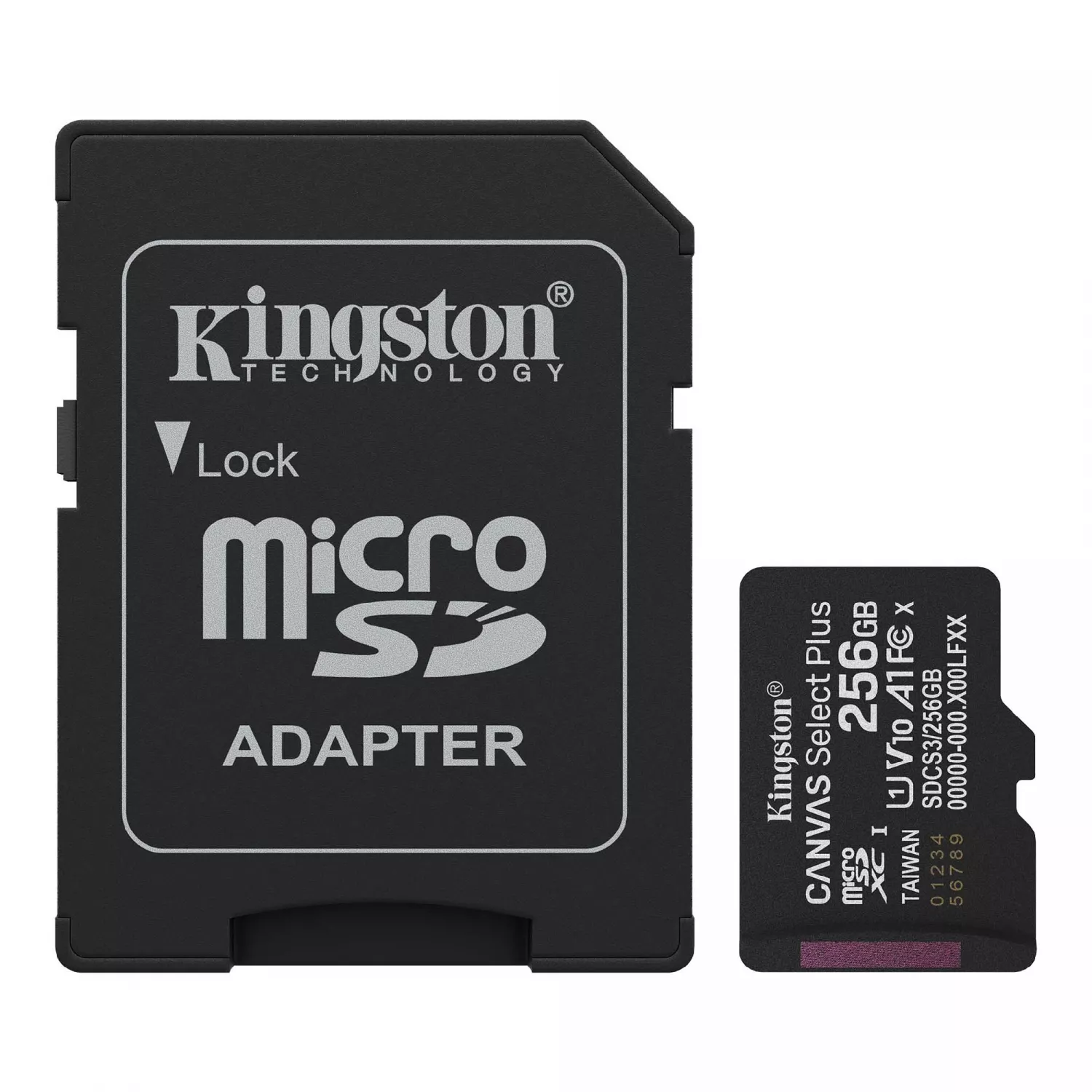 256GB microSD Class10 A1 UHS-I U1 (V10) + SD adapter Kingston Canvas Select Plus, Up to: 100MB/s, Optimized for use with Android devices, Enhanced Android A1 Performance Class |