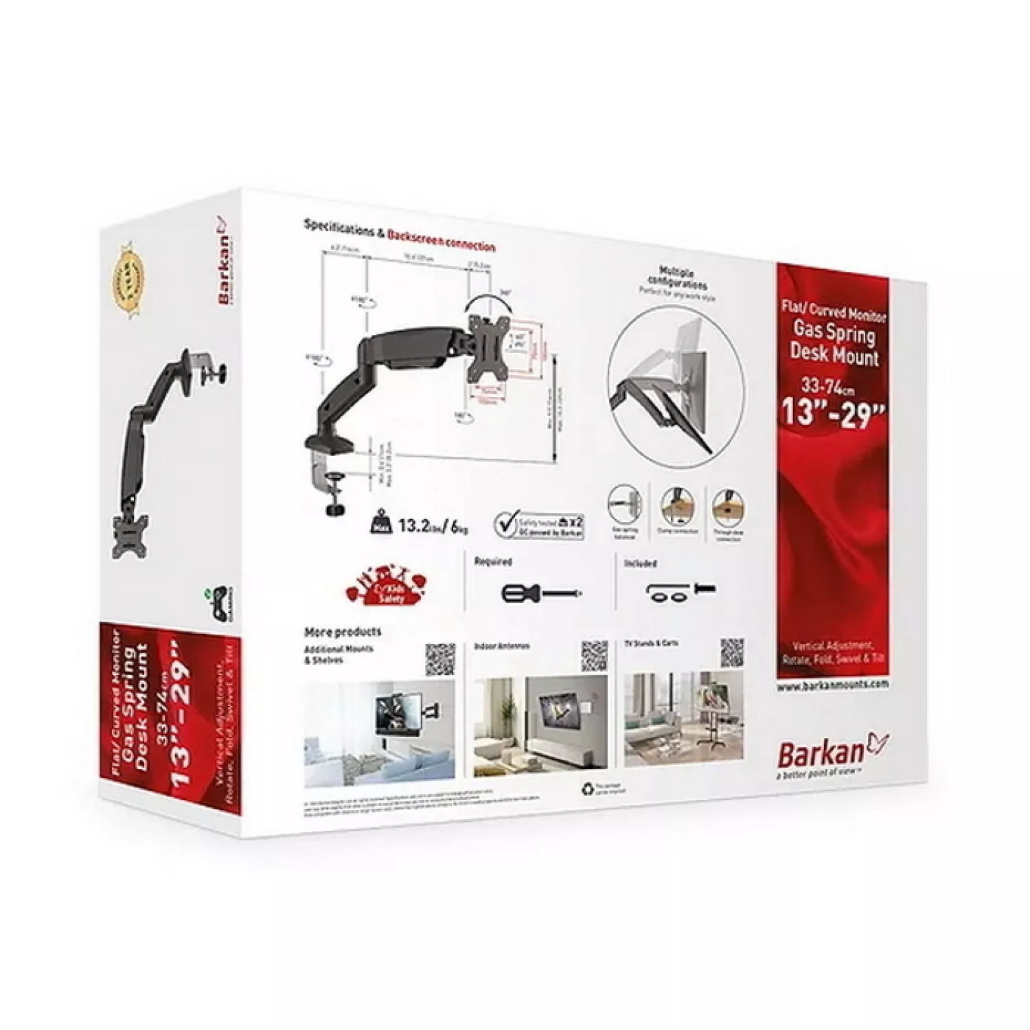 Barkan M121P a fost testat cu succes cu o capacitate de încărcare de până la 18 kg (40 lbs), confirmând durabilitatea și siguranța sa. Designul permite o gamă largă de mișcare pentru găsirea unei poziții ergonomice a ecranului. Pentru o instalare corectă, vă rugăm să urmați cu strictețe instrucțiunile de asamblare. Dacă aveți întrebări, vă rugăm să contactați serviciul de asistență.
