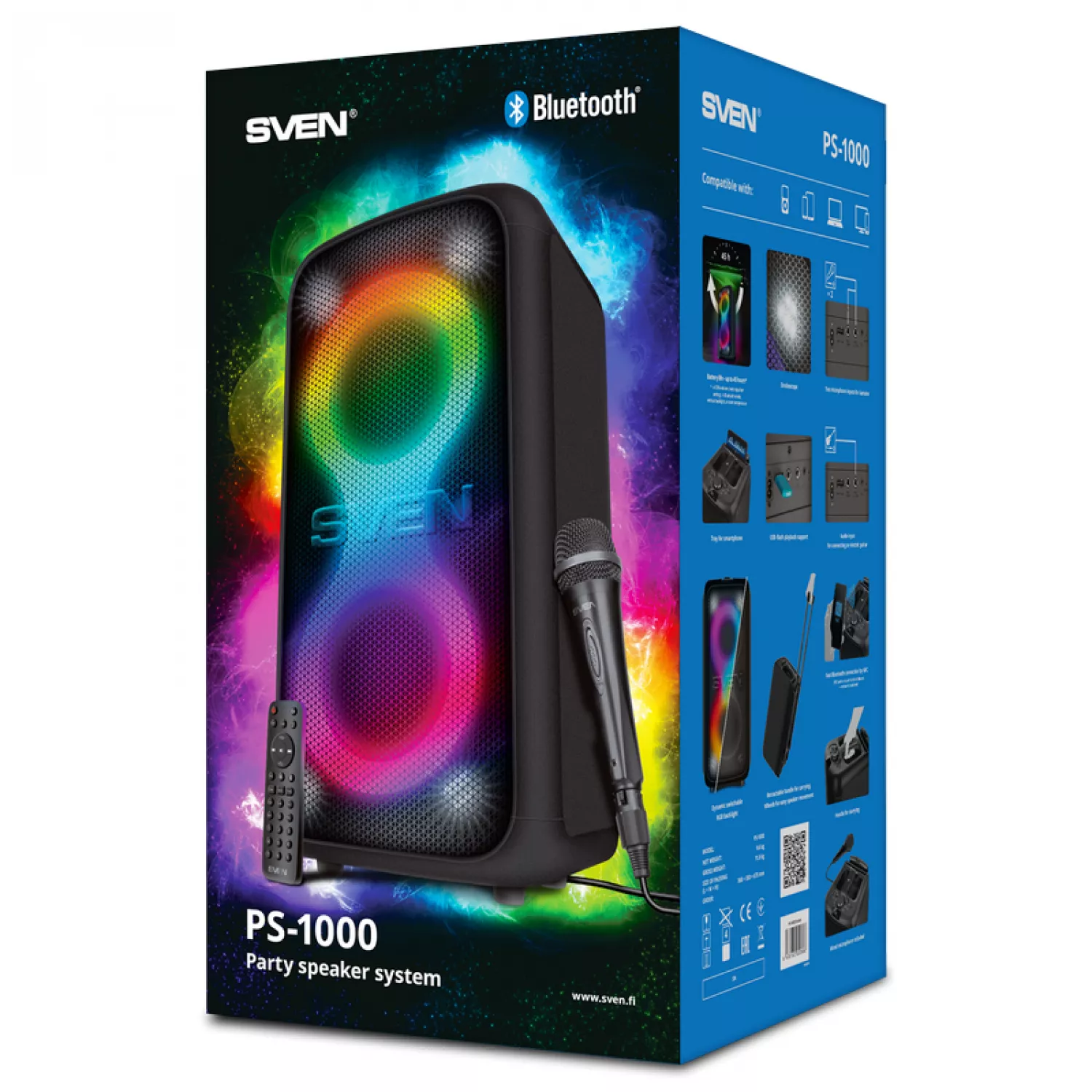 Boxa sven partybox sven "ps-1000" 180w, tws, bluetooth, fm, usb,led-display, 8000ma*h, black