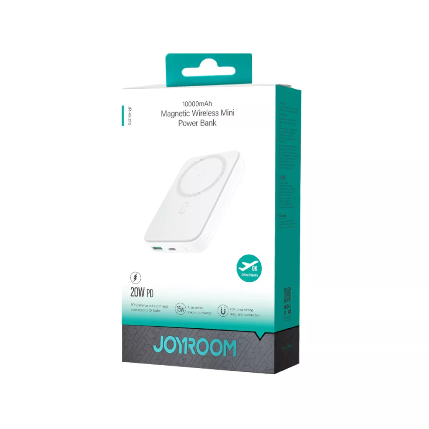 Caracteristici pentru Baterie externa universala JOYROOM JOYROOM 20W Mini magnetic wireless power bank 10000mah White With Type-C to Type-C 0.25m cable White R-W020 White