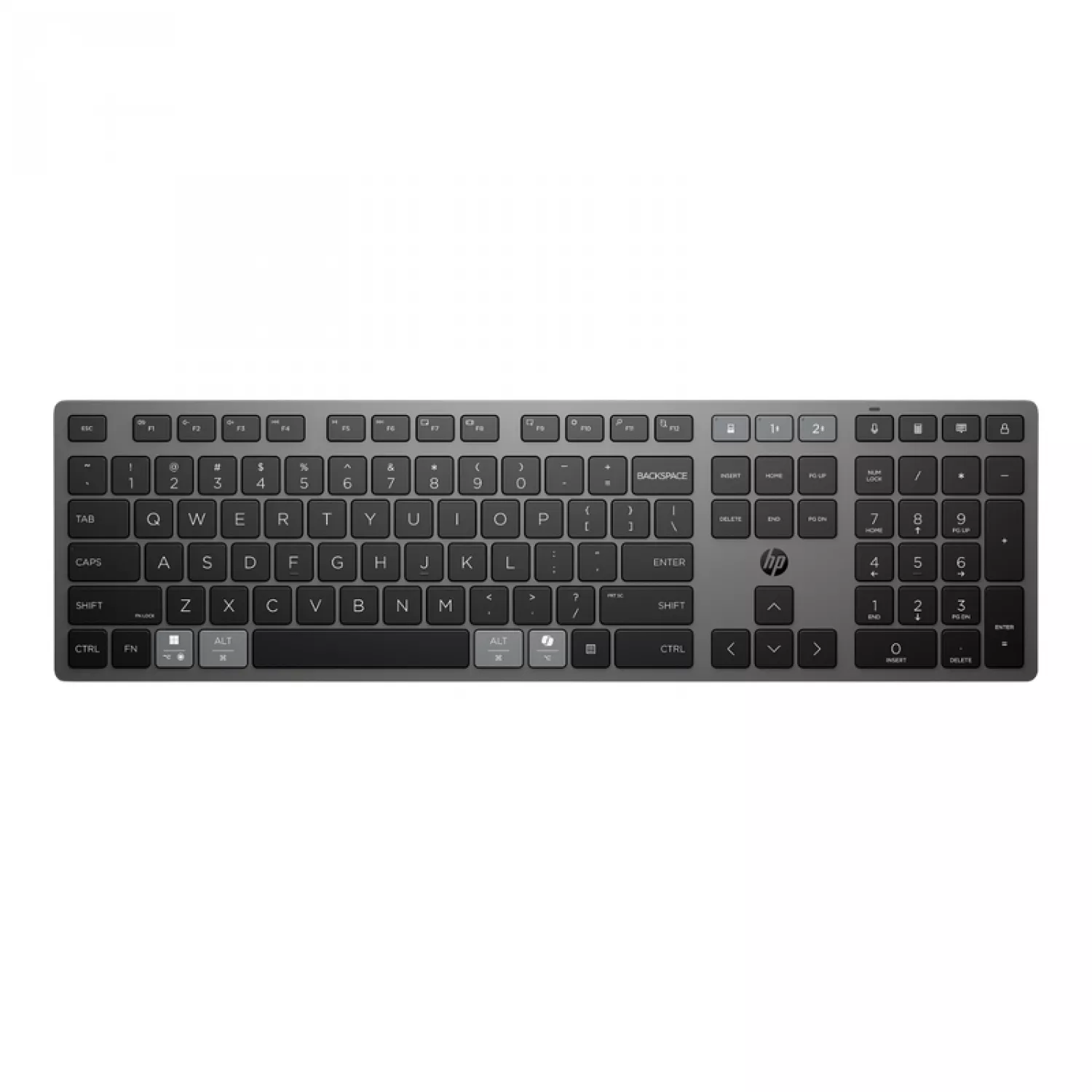 Wireless Keyboard HP 725 Multi-Device Rechergable, Full size; Spill resistant;Swift pair; Quiet keys; 22 progr. keys; 2,4GHz+BT, EN/RU, Black |