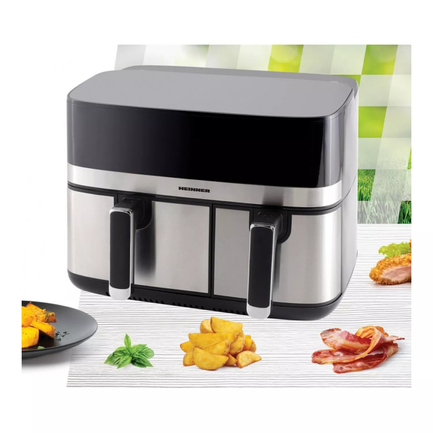 Аэрогрили Heinner HAF-H9DB17BKS 1700 Вт | 8.6 л | Двоиная (5.3 л + 3.3 л) | Дисплей | Сенсорное управление Серебристый |