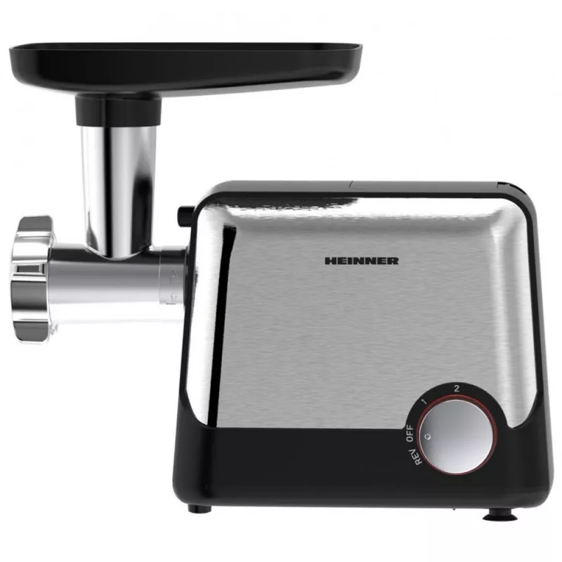 Мясорубка Heinner HMG-2100BKS3 2100 Вт | 1.8 кг/мин | насадка для томатов, кеббе и колбасок | 2 скорости | 3 металлические решетки | нож из нерж. стали, функция реверса Нерж. |