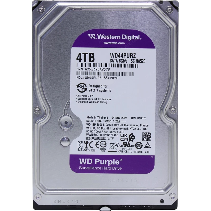 3.5” HDD 4.0TB Western Digital WD44PURZ Caviar® Purple™, CMR Drive, IntelliPower, 128MB, SATAIII |