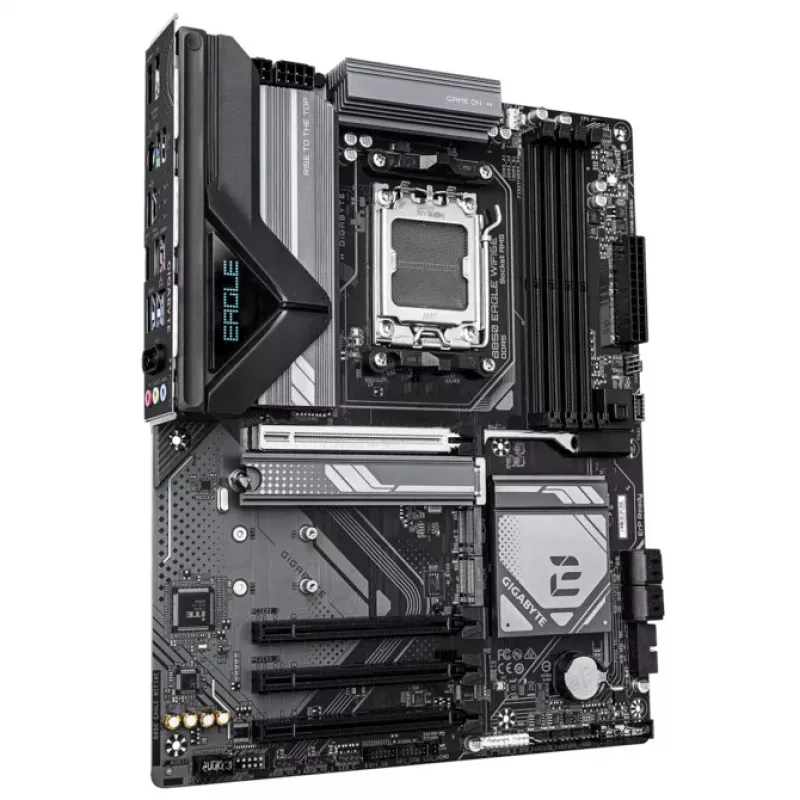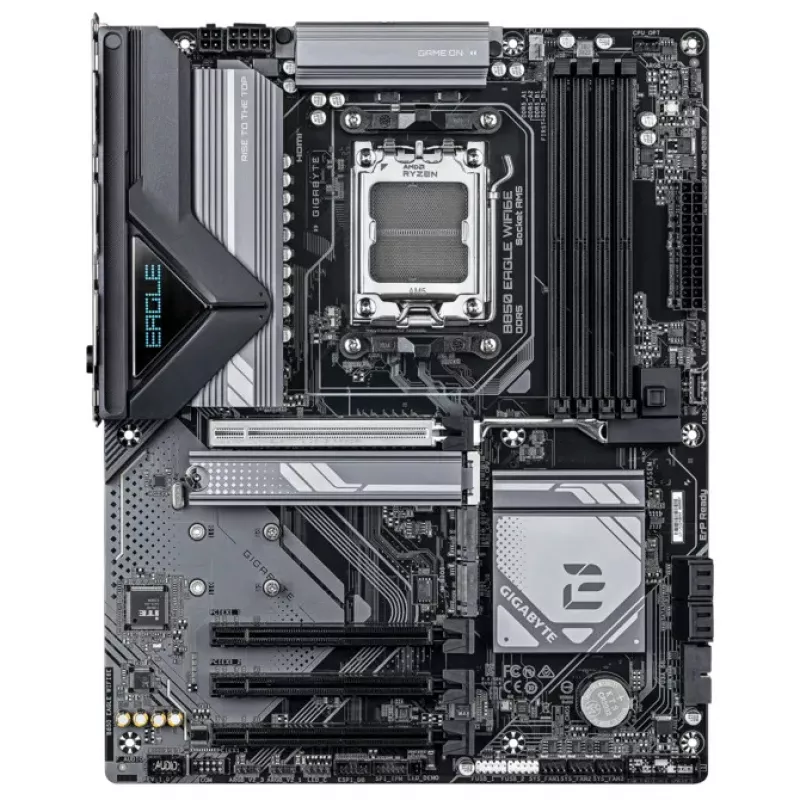 GIGABYTE B850 EAGLE WIFI6E, Socket AM5, 12Phases, AMD B850, Dual 4xDDR5-8200, APU AMD graphics, HDMI, DP, 4xPCIe5.0 X16, 4xSATA3, RAID, 3xM.2 PCIe 5.0, Realtek 7.1 HDA, 1x2.5GbE LAN, WiFi6e/BT, 2xUSB 3.2Gen2, 6xUSB3.2 (2C+4A), RGB Fusion 2.0, Black, |