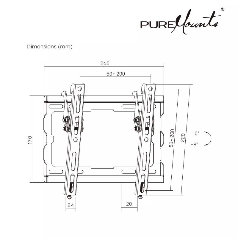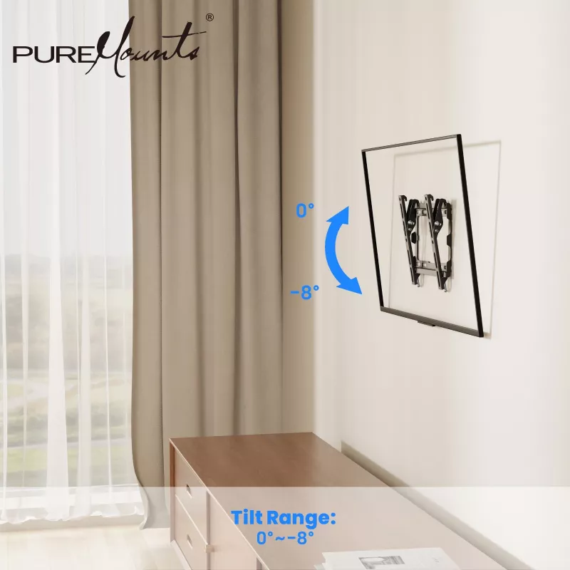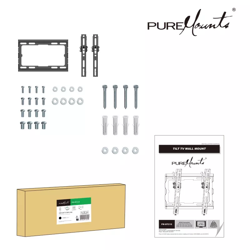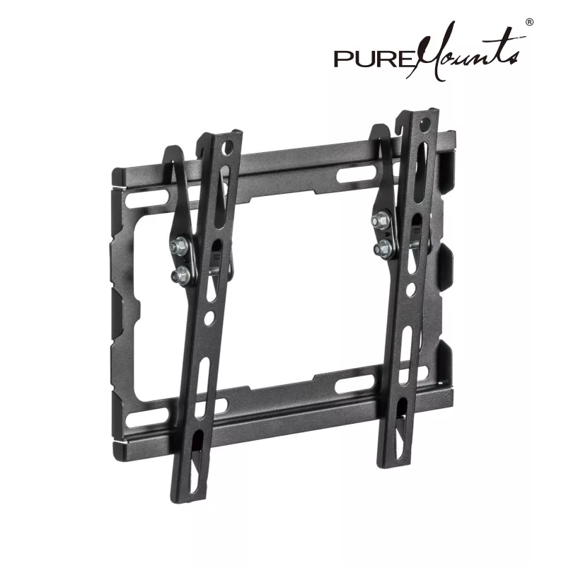 TV-Wall Mount for 23-43” - PureMounts ”BT210”, Tilted, up to 45kg, Tilt: 0/ -8°, ultra slim profil 25mm wall distance, max.VESA 200x200, Steel black |