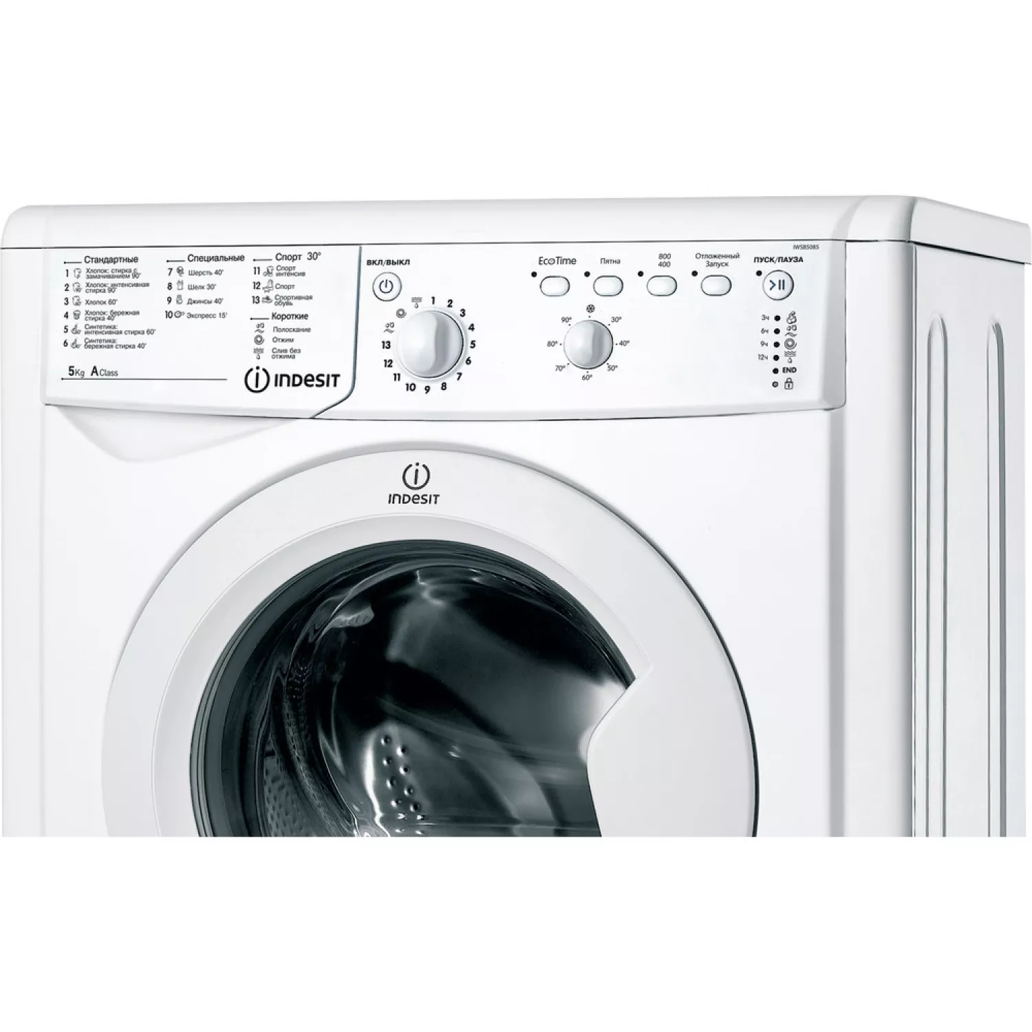 Caracteristici pentru Masina de spalat rufe Indesit IWSB 5085 (CIS), Ingusta, 5 kg, 800 RPM, 13 programe, Alb, A