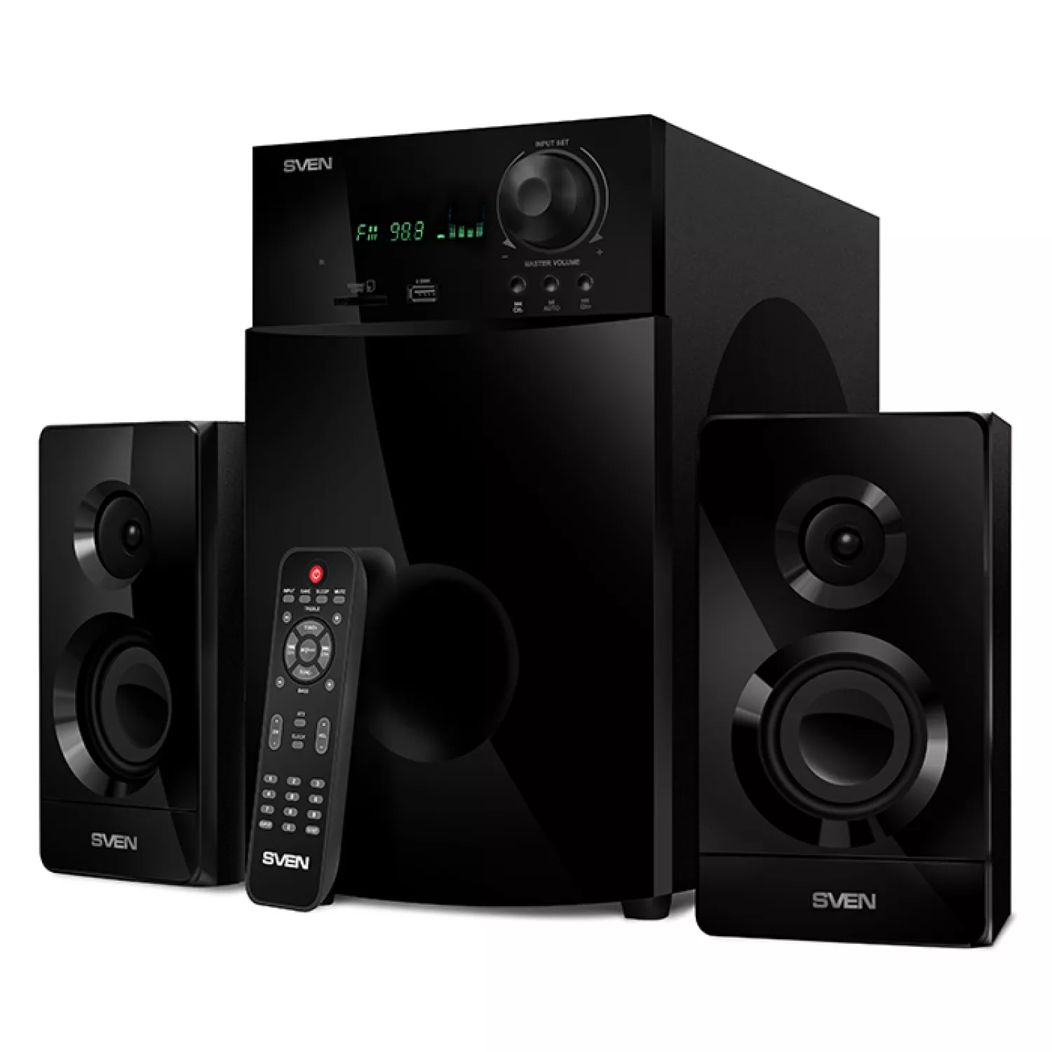 Compania SVEN a prezentat sistemul acustic 2.1 SVEN MS-2100. Acest sistem acustic se potrivește ideal pentru vizionarea filmelor, jocurilor și redare de muzică. 80 de wați de sunet puternic saturat este suficient pentru a organiza o petrecere în onoarea întâlnirii cu prietenii sau într-o companie zgomotoasă să priviți o difuzare sportivă. Sistemul poate funcționa în mod autonom. Player-ul integrat pentru audio fișiere reproduce piese de pe USB stick sau SD-card. Prinde pe FM-tuner radio stația preferată și serile le puteți petrece alături de grijile plăcute: citind o carte, stand cu cei dragi la o ceașcă de ceai.