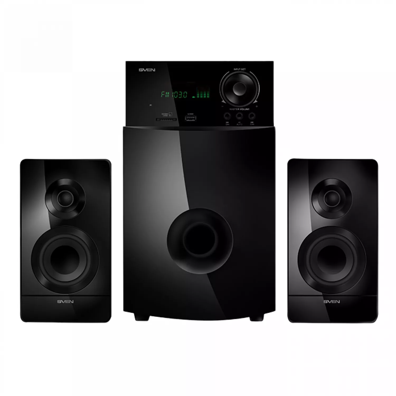 Sistemul acustic SVEN MS-2100 este realizată într-un design aprins și elegant, care poate decora orice interior. Panourile frontale ale subwoofer-ului și a sateliților sunt acoperite cu un luciu negru și se potrivesc ideal cu textura mată a carcaselor.