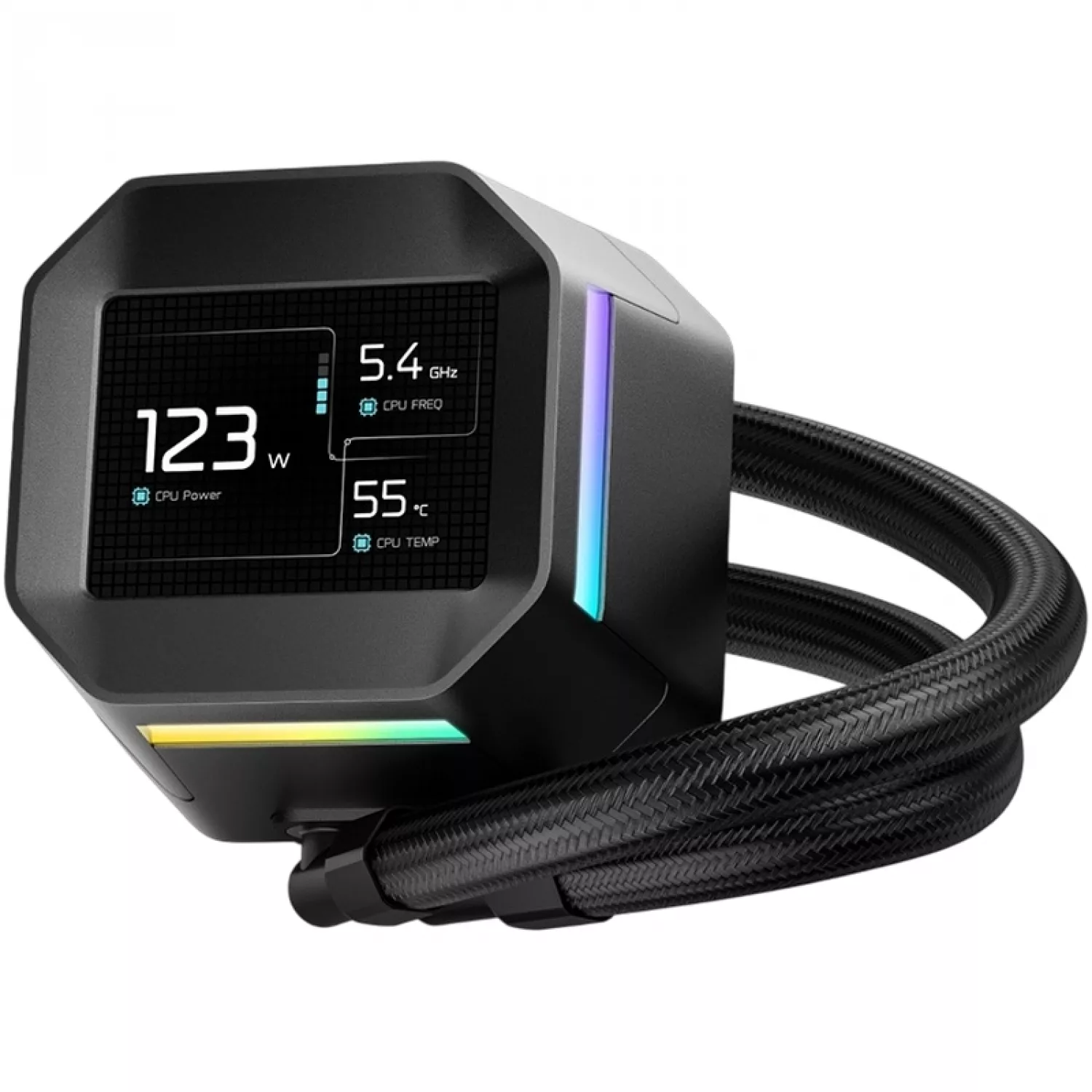 Aio liquid cooling deepcool aio liquid cooling deepcool "lm240" (<38.71dba, 600-2400rpm, 66.32cfm, 2x120mm, 2400 rpm, argb, 2.4" ips display with mp4 video, 1530g.) black