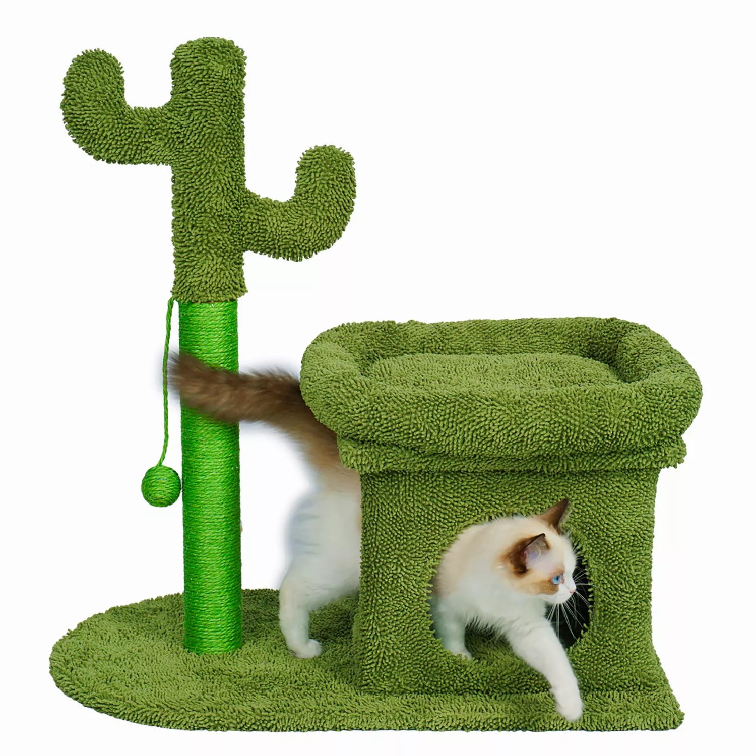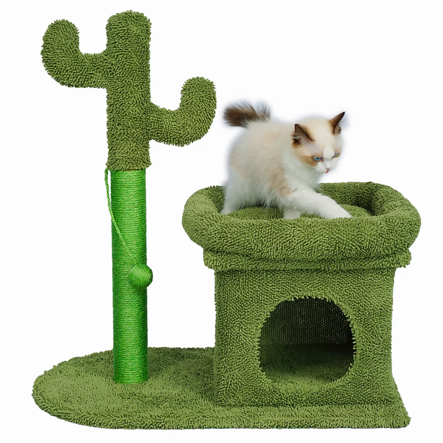 Ansamblu de joaca pentru pisici jumi model cactus, cu platforma, culcus, verde, 70x42x68 cm