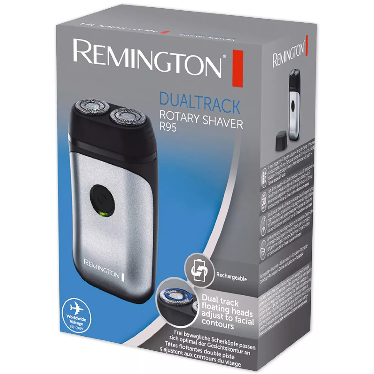 Caracteristici pentru Aparat de ras electric Remington R95, Rotativ, Uscat, Acumulator, Negru, Gri